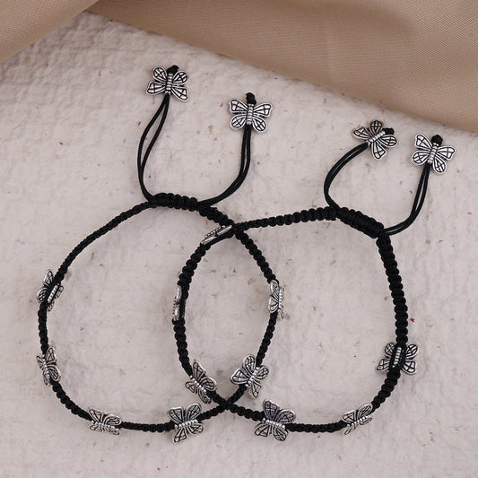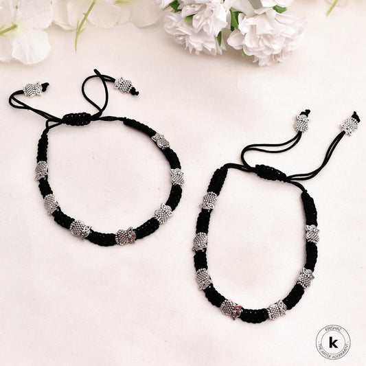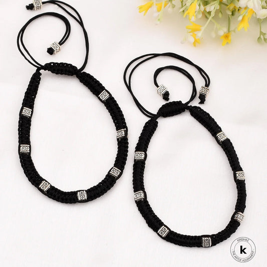 Ananya Rose Patterned Silver Oxidized Thread Anklets