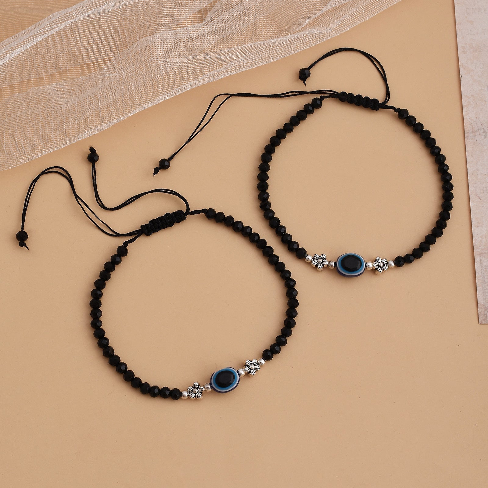 Look effortlessly edgy in these Tanishka Flower Patterned Evil Eye Thread Anklets! Tiny flowers in an array of colors decorate this stylish accessory, but don't let its delicate looks fool you - this cute piece is sure to ward off any bad vibes!
