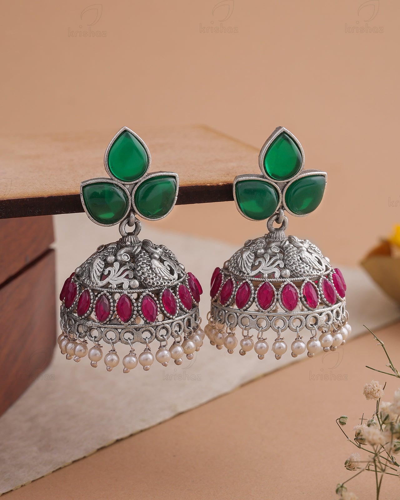 You'll look dazzling in these Valentina Silver Oxidized Jhumki Earrings! Whether you love jhumki or just love looking chic, these earrings are the perfect way to do both! Get ready for compliments - you're guaranteed to shine in these stunning silvery earrings!