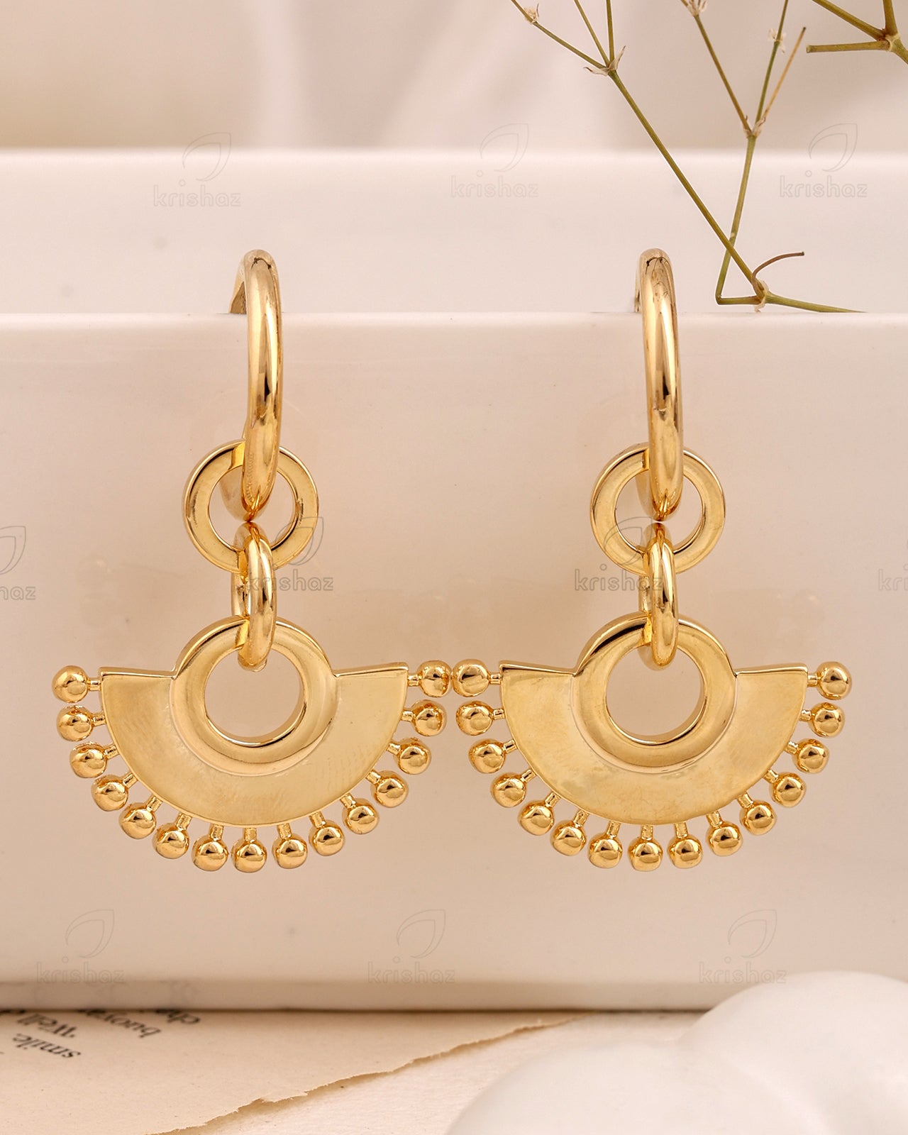 Introducing the real gold plated Korean Fashionable Dangler! This accessory is perfect for anyone who wants to add a touch of glamour to their outfit. With 18k gold plating and a dangling design, it's sure to make a fun and unique statement. Get ready to stand out in style!